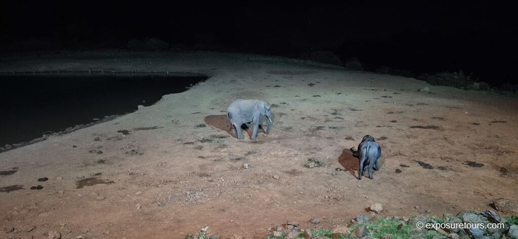 A subsequent location allowed for controlled low-light wildlife photography, shooting from a bunker overlooking a floodlit watering hole. This environment was ideal for photographing elephants with shorter lenses while evaluating high-ISO performance, autofocus reliability, and image noise under challenging conditions.