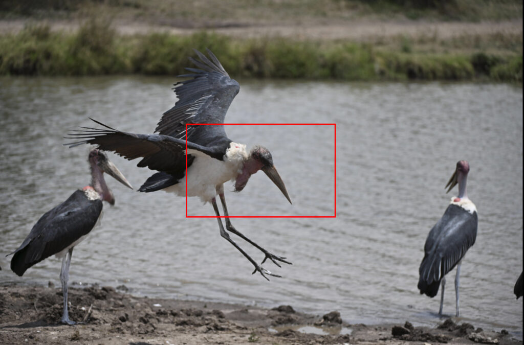 The Z9 did an impressive job of tracking this Marabou Stalk flying and coming into land. It held focus with Wide Area AF (L) selected in program mode.